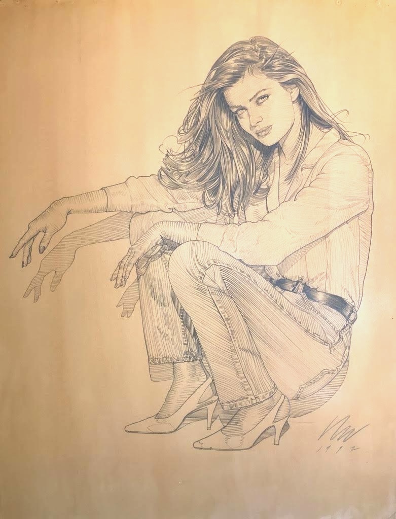 This 1992 unframed pencil of woman posing is (32″ x 44″) ! Yes that is the size of the artwork. “Glamour Girl”